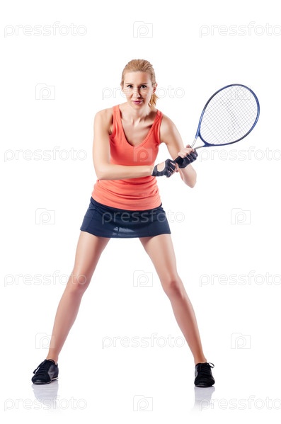 Женщина с теннисной ракеткой в руках