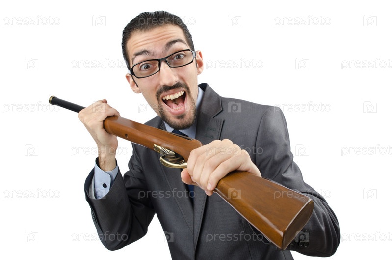 Бизнесмен с винтовкой в руках
