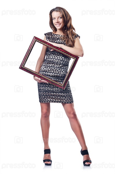 Молодая красивая женщина с фоторамкой