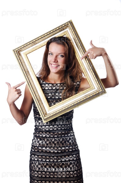 Молодая красивая женщина с фоторамкой