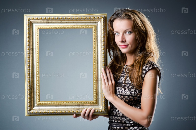 Молодая красивая женщина с фоторамкой