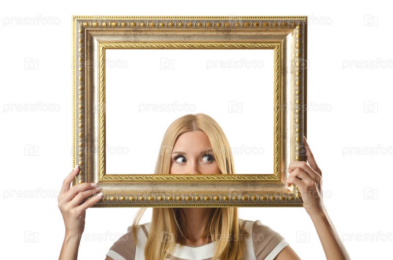 Молодая красивая женщина с рамкой для картин