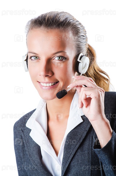 Оператор колл-центра на белом фоне