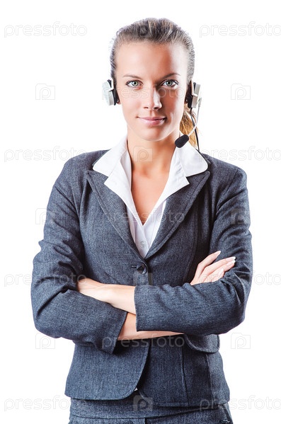 Оператор колл-центра на белом фоне