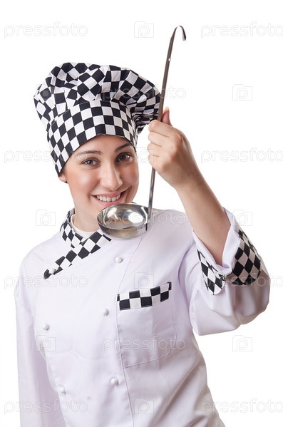 Женщина повар с поварешкой в руке