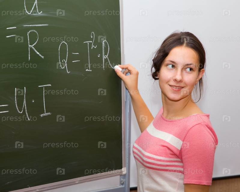 Девушка в классе физики