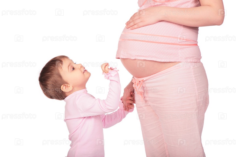 Беременная девушка в розовом костюме