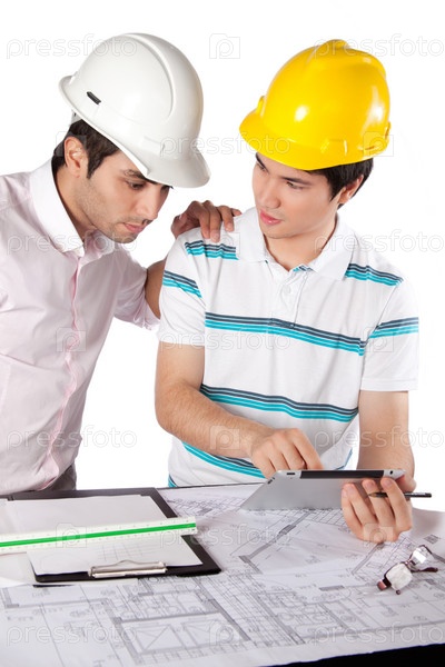 Два архитектора с цифровым планшетом