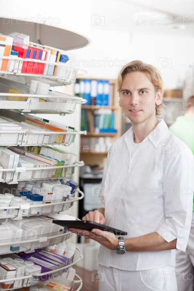 Фармацевт держит планшет