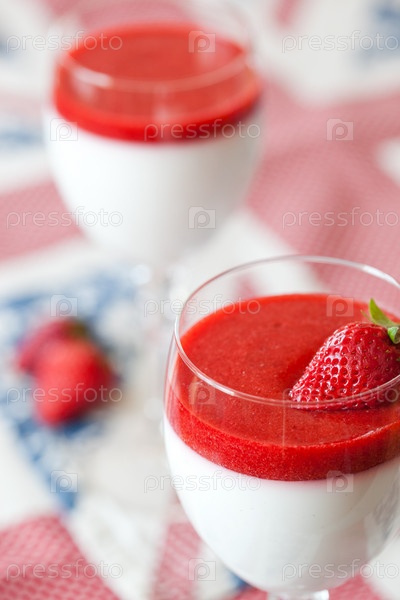 Десерт Панна Котта с клубничным сиропом