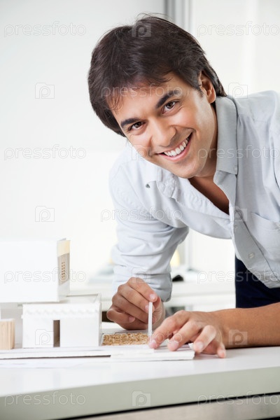 Архитектор работает над моделью дома