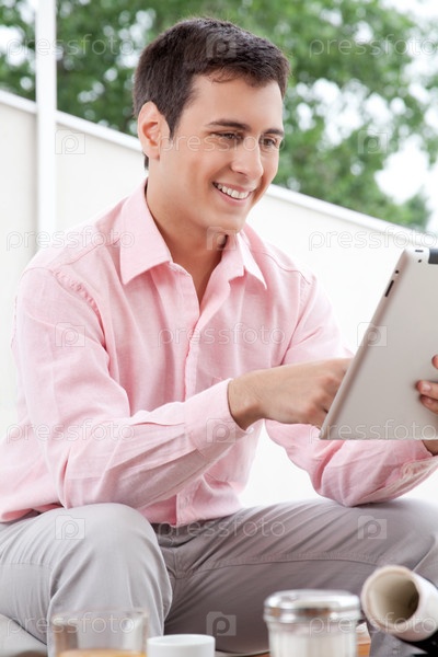Молодой архитектор с планшетным компьютером