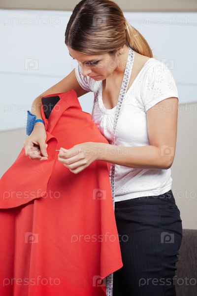 Дизайнер моды регулирует булавки на ткани