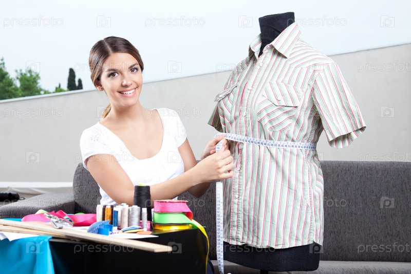 Женщина-дизайнер снимает мерки