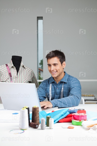 Портной использует ноутбук в работе