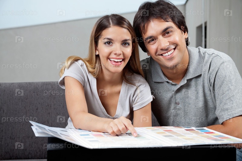 Пара выбирает цвет из образцов