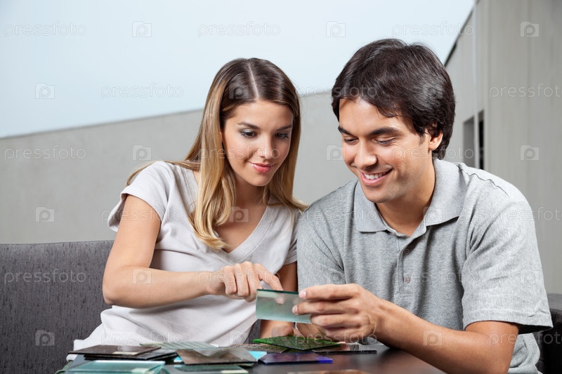 Пара выбирает стеклянную плитку из образцов