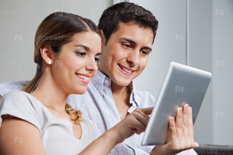 Молодая пара с планшетным компьютером