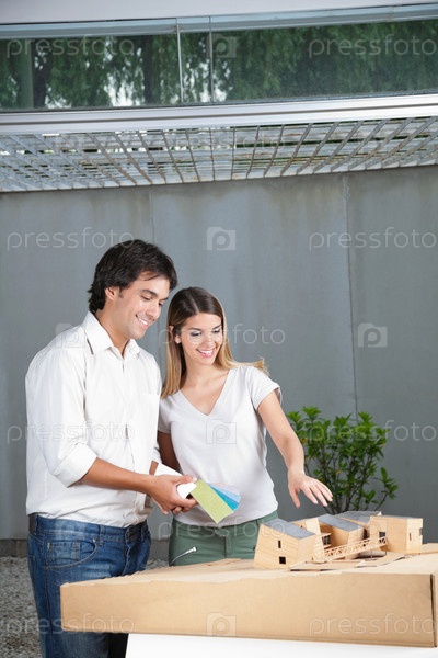 Архитекторы выбирают цвет для модели дома