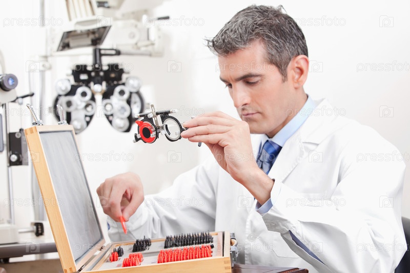 Окулист с очками для проверки зрения