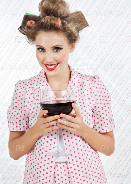 Женщина держит огромный бокал