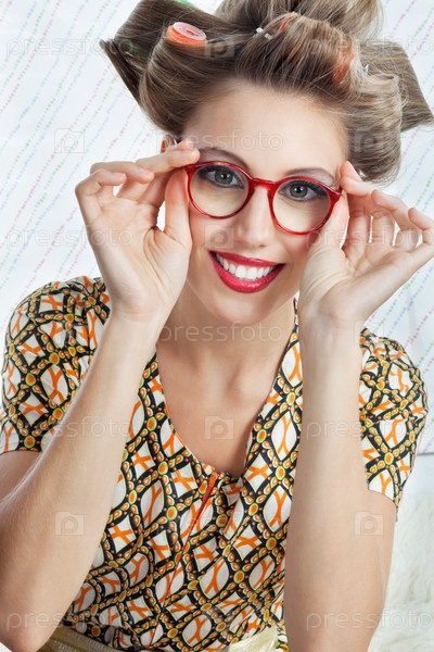 Женщина в красной старинной оправе