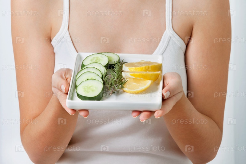 Женщина с нарезанными огурцами и лимоном