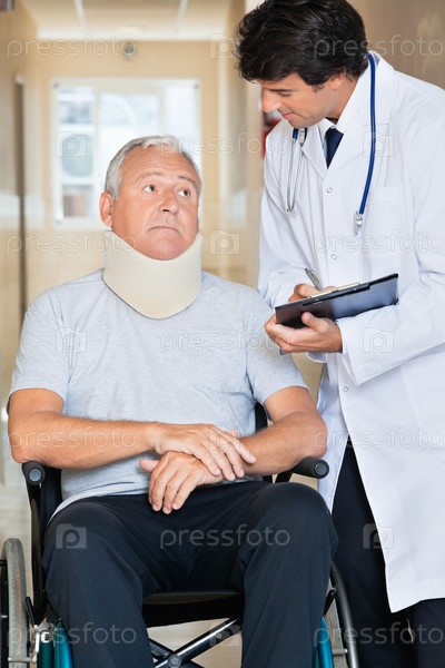 Доктор с пациентом в инвалидной коляске
