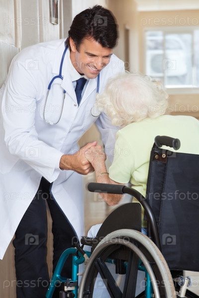 Доктор с пациентом на инвалидной коляске