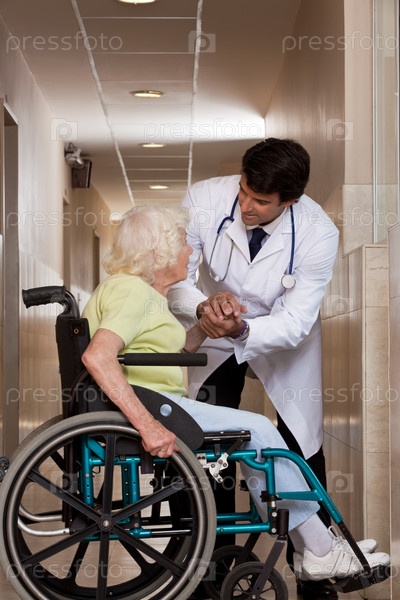 Доктор с пациентом на инвалидной коляске