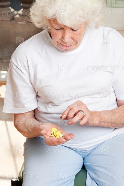 Пожилая женщина принимает таблетки