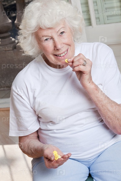 Пожилая женщина принимает таблетки