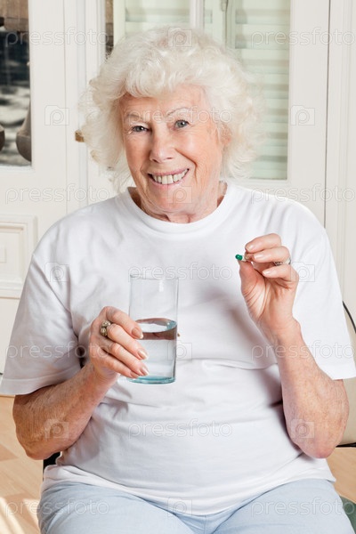 Пожилая женщина принимает таблетки