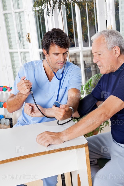 Медбрат проверяет давление крови у пациента