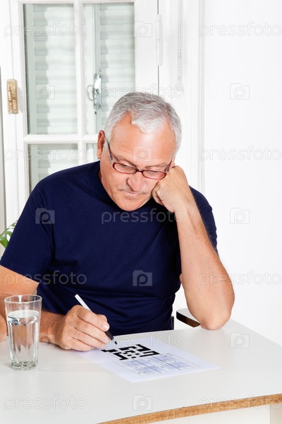 Пожилой мужчина разгадывает головоломку судоку