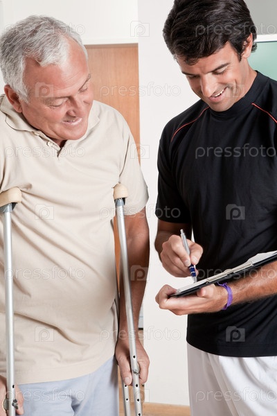 Пациент на костылях и врач