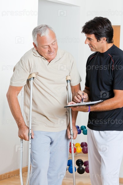 Пациент на костылях и терапевт