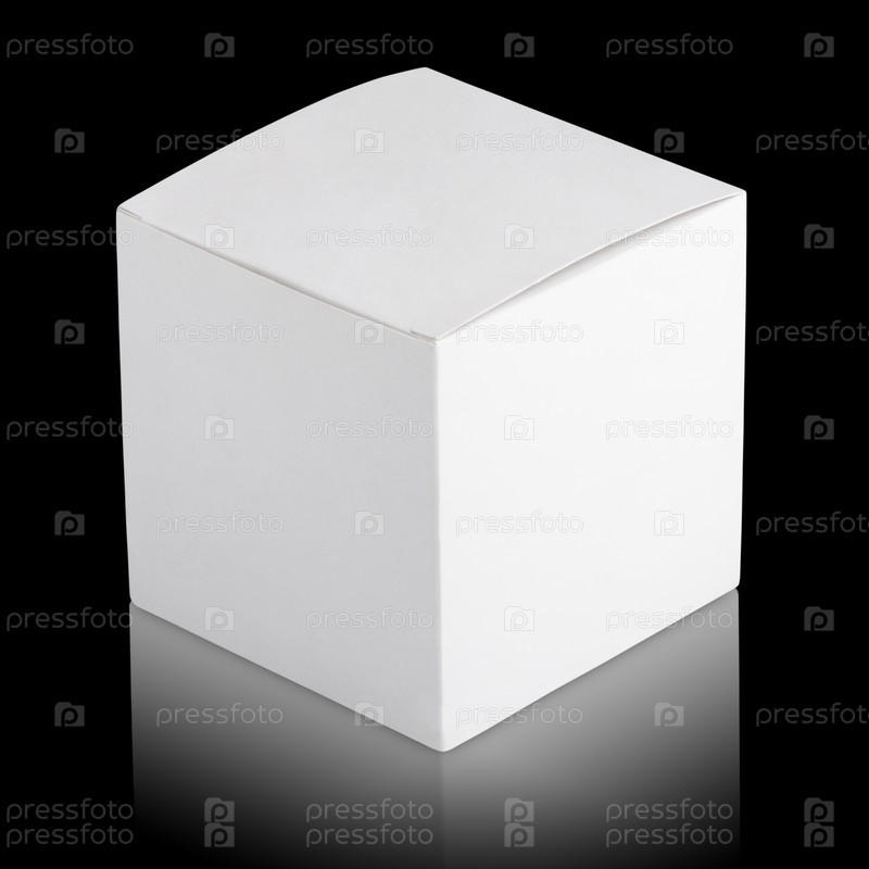 Закрытая белая картонная коробка на черном фоне
