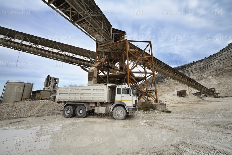 Грузовик на погрузке камней на цементном заводе. Маддалони, Неаполь, Италия