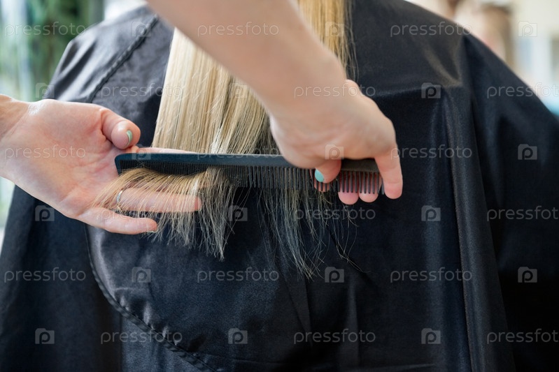 Парикмахер расчесывает волосы клиентки
