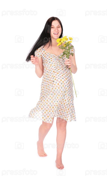 Беременная девушка с букетом цветов