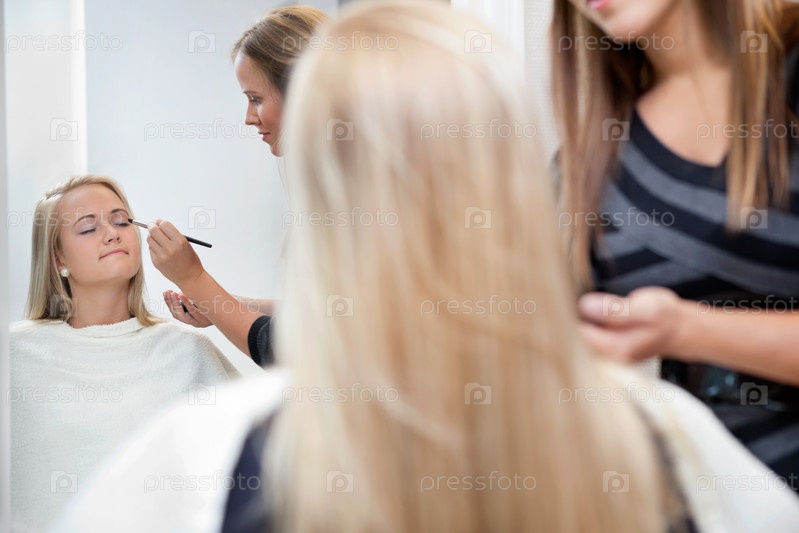 Визажист накладывает тени для век