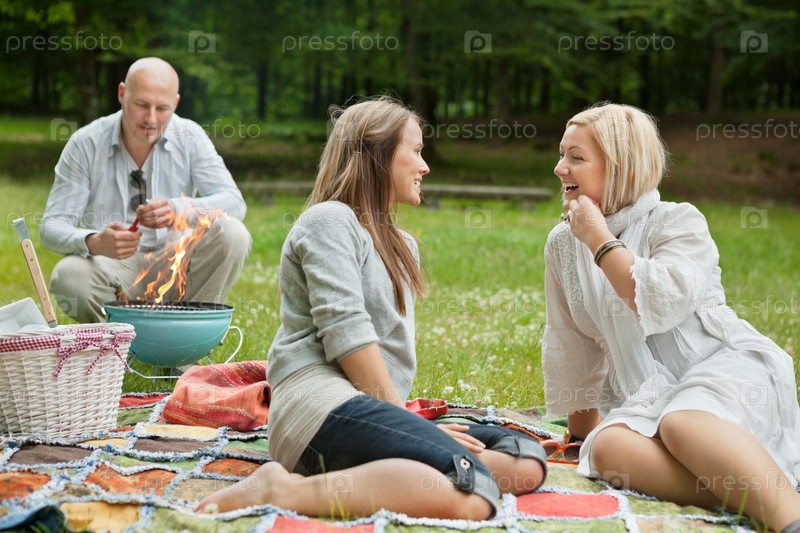 Счастливые друзья на пикнике