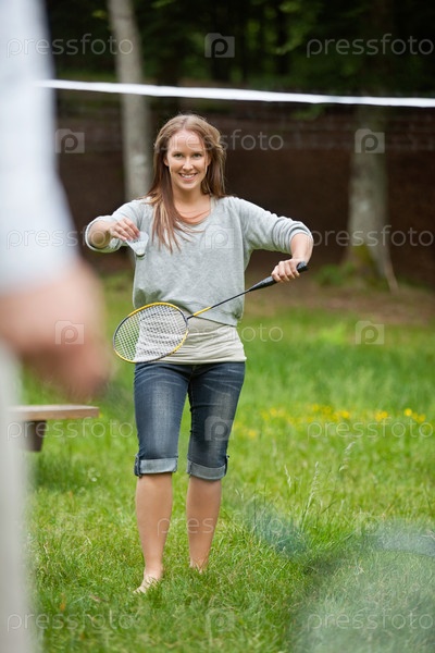 Девушка играет в бадминтон