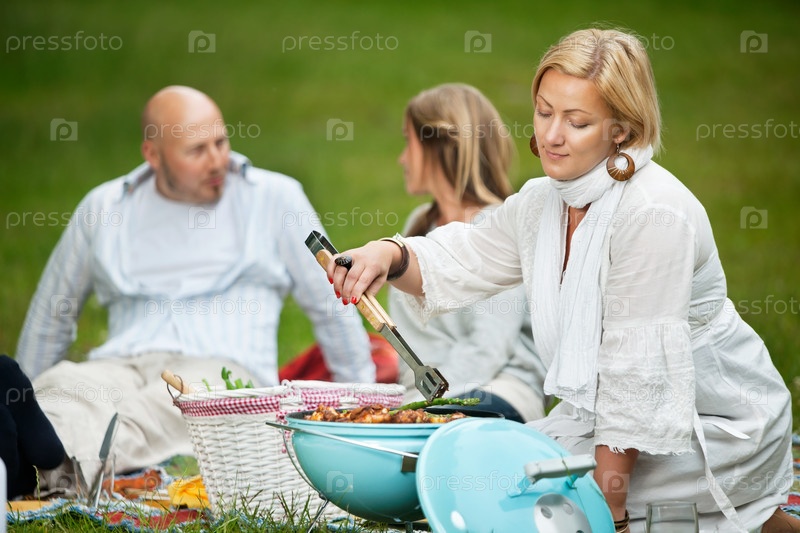 Друзья на барбекю в парке