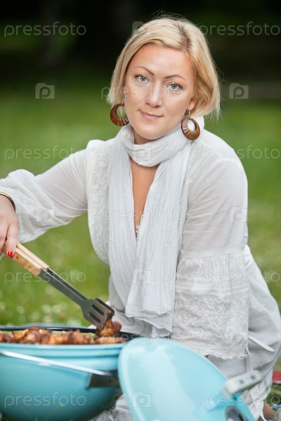 Женщина готовит еду на барбекю