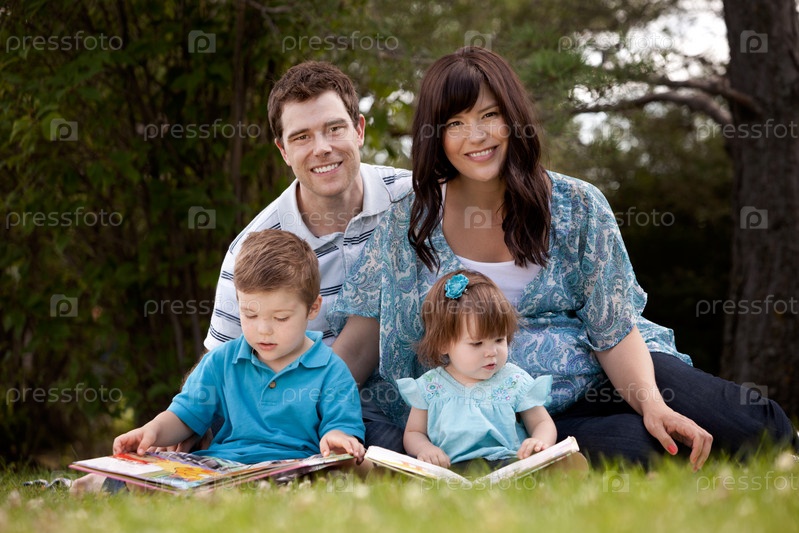 Семейное чтение в парке