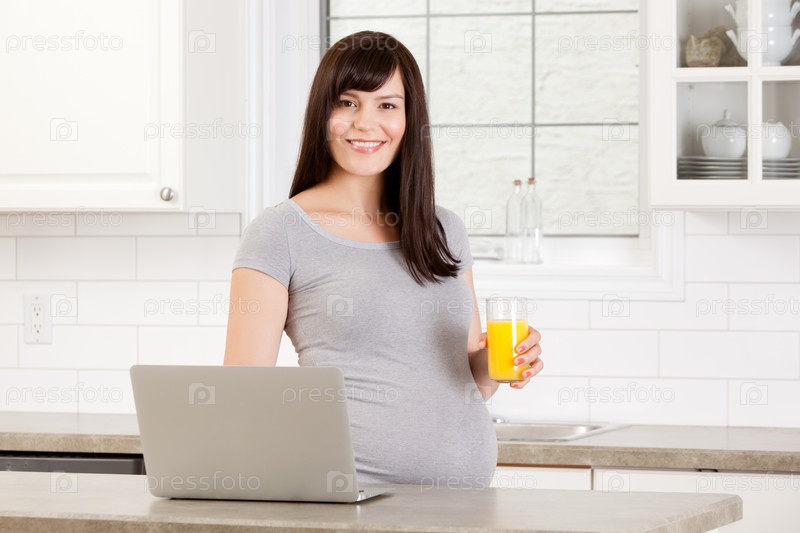 Счастливая беременная женщина с ноутбуком