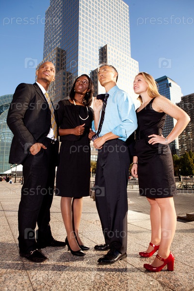 Четыре деловых человека смотрят вверх