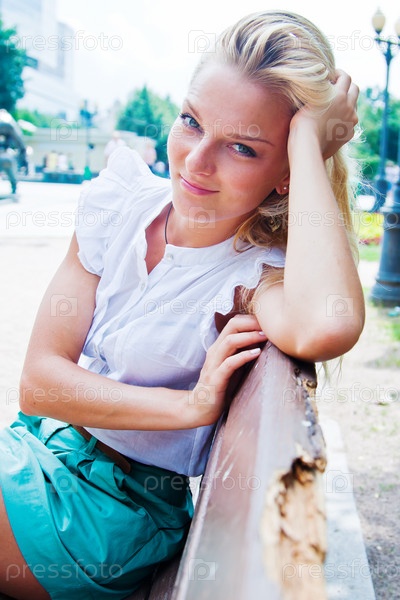 Молодая и красивая женщина отдыхает в парке